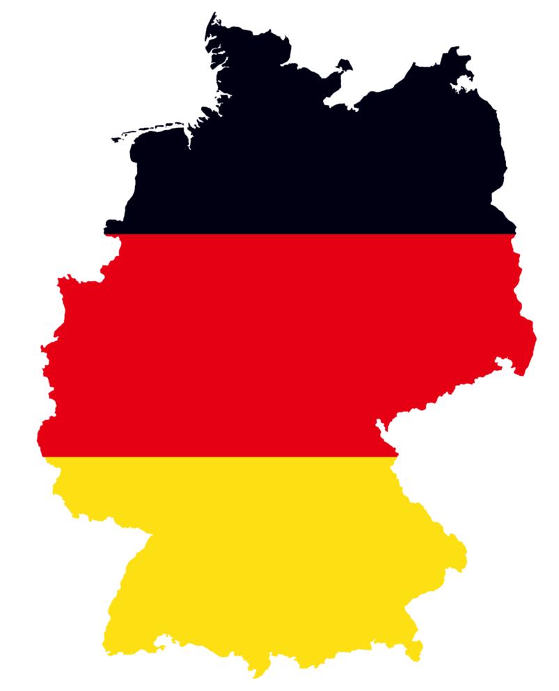 Carte de drapeau Allemagne. Allemagne carte et drapeau (Europe de l'Ouest - Europe) à imprimer. Allemagne carte et drapeau (Europe de l'Ouest - Europe) à télécharger. Le drapeau de l'Allemagne est un tricolore composé de trois bandes horizontales égales arborant les couleurs nationales de l'Allemagne : noir, rouge et or, comme indiqué sur la carte et le drapeau de l'Allemagne. Le drapeau a été adopté pour la première fois comme drapeau national de l'Allemagne moderne en 1919, pendant la République de Weimar. Le tricolore noir-rouge-or est apparu au début du 19e siècle et s'est imposé lors des révolutions de 1848. L'éphémère Parlement de Francfort de 1848-1850 a proposé le tricolore comme drapeau d'un État allemand uni et démocratique. Avec la formation de la République de Weimar après la Première Guerre mondiale, le tricolore a été adopté comme drapeau national de l'Allemagne. Après la Seconde Guerre mondiale, le tricolore a été désigné comme le drapeau de l'Allemagne de l'Ouest et de l'Allemagne de l'Est. Les deux drapeaux étaient identiques jusqu'en 1959, date à laquelle le drapeau est-allemand a été enrichi des armoiries de l'Allemagne de l'Est. Depuis la réunification le 3 octobre 1990, le tricolore noir-rouge-or est resté le drapeau de l'Allemagne.